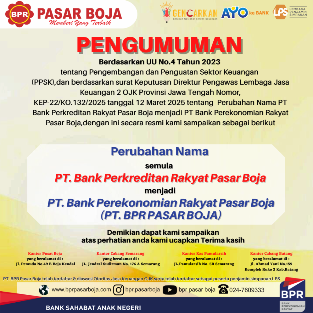 Berdasarkan UU No. 4 Tahun 2023 tentang Pengembangan dan Penguatan Sektor Keuangan (PPSK),dan berdasarkan surat Keputusan Direktur Pengawas Lembaga Jasa